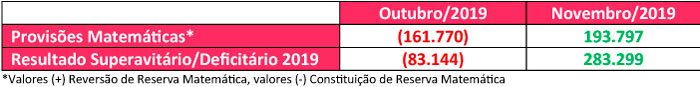 Conforme publicado em 28/01/2020, o destaque do mês é referente à mudança no regime de pensão em decorrência da aprovação da Reforma da Previdência, a qual gerou impacto positivo no resultado do Plano, com a redução das provisões matemáticas: