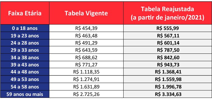 Após as avaliações atuariais e considerando a necessidade de equilíbrio econômico-financeiro entre receitas e despesas do plano, foi aprovado pela Governança do Economus, no mês de agosto/2020, o percentual de reajuste das mensalidades, de 22,36%, que entrará em vigor a partir de janeiro/2021, conforme determinação da ANS.