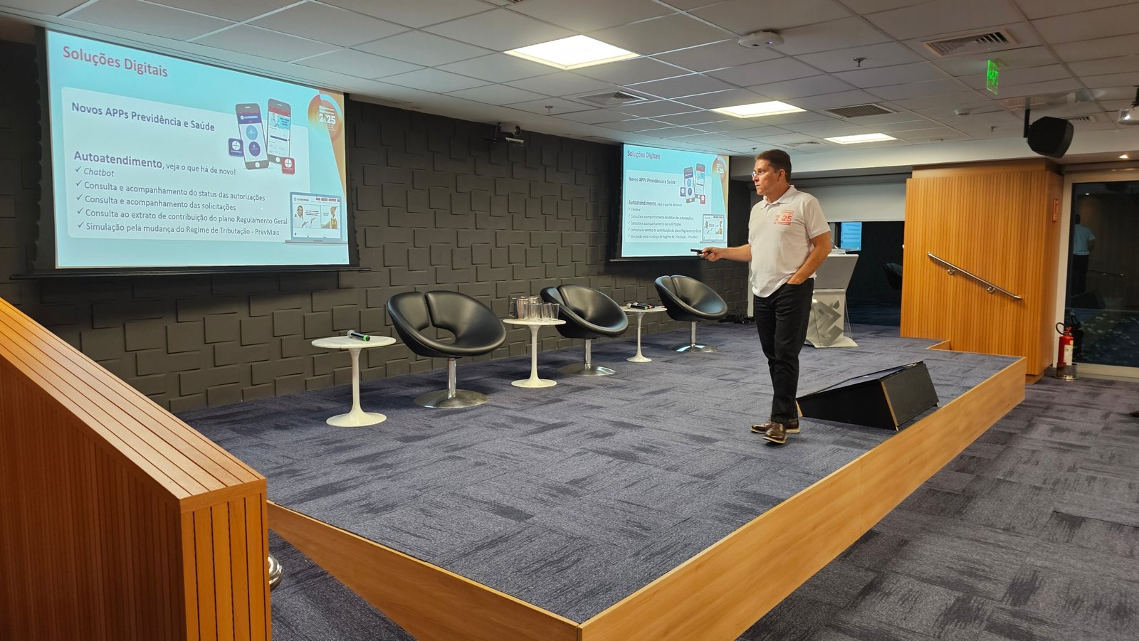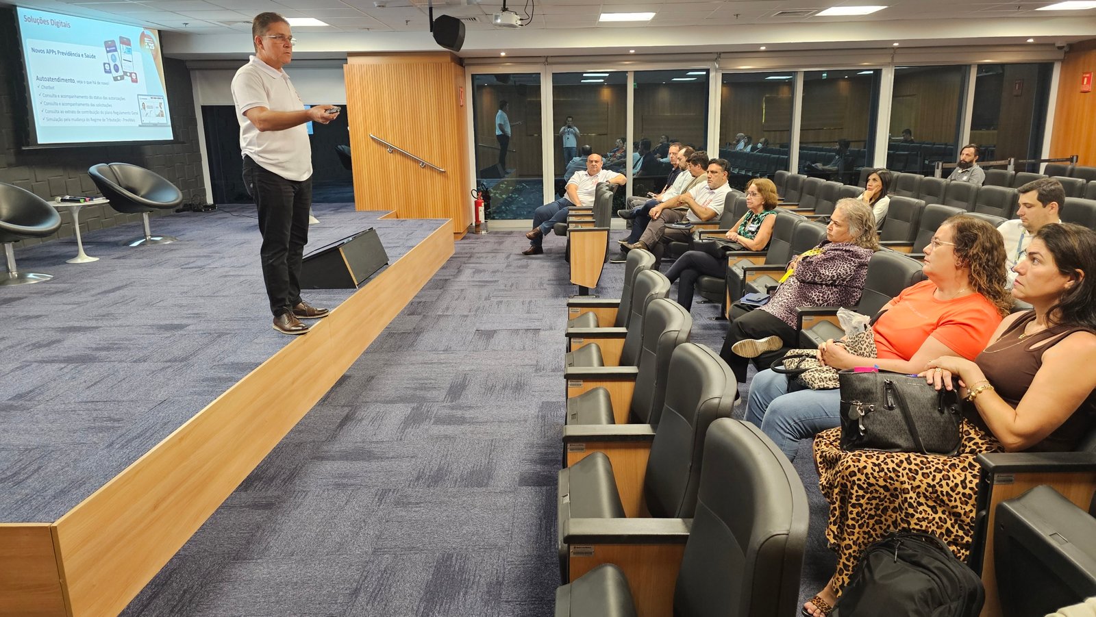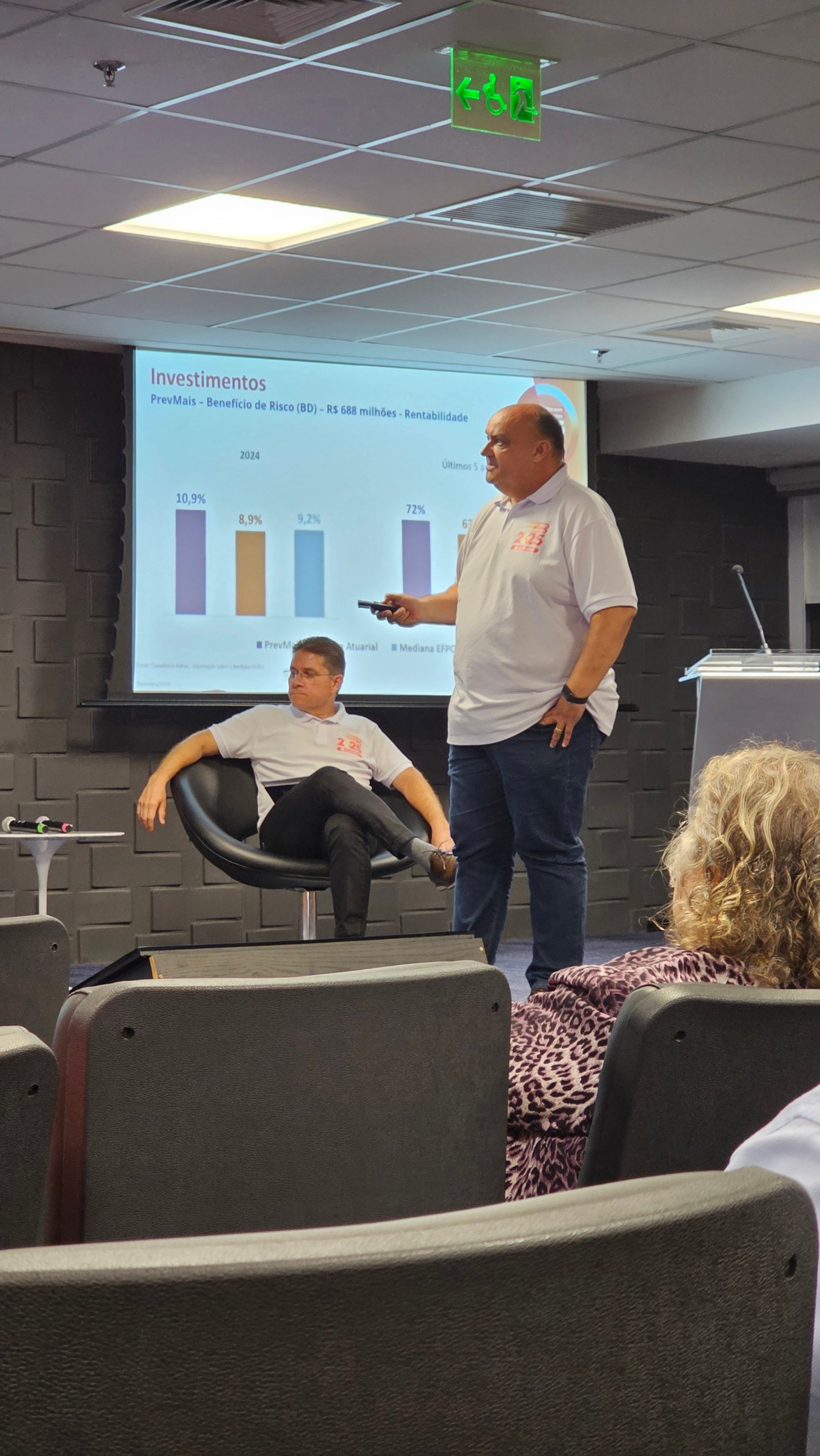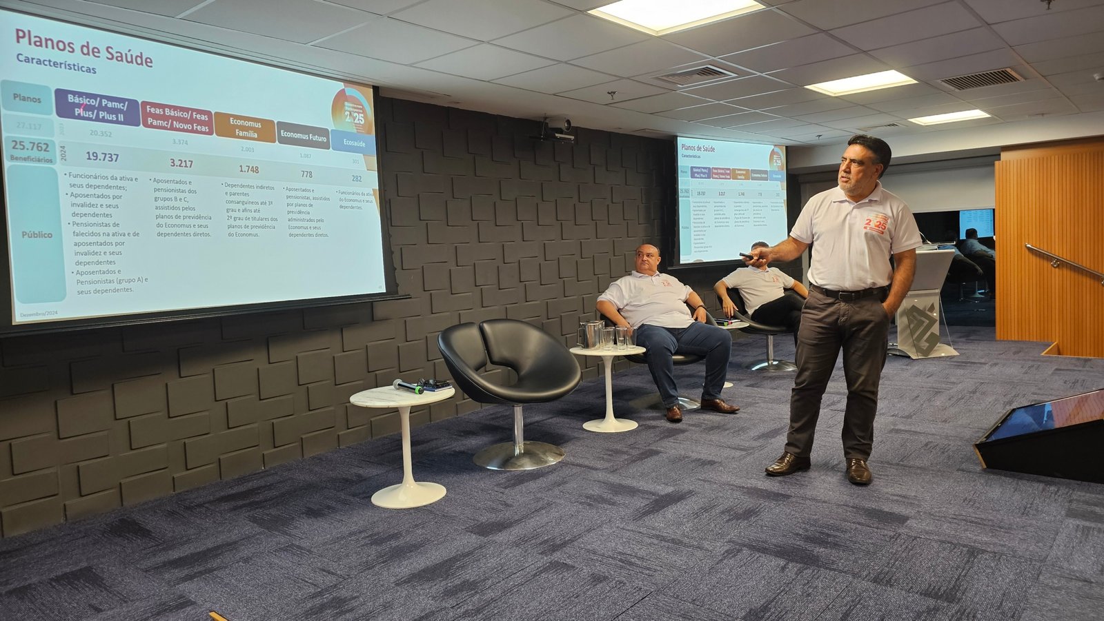 Além da apresentação, que resumiu as informações mais importantes que constam em nosso do RAI 2024, os participantes puderam tirar dúvidas sobre os planos de previdência e saúde e conversar sobre o Economus.