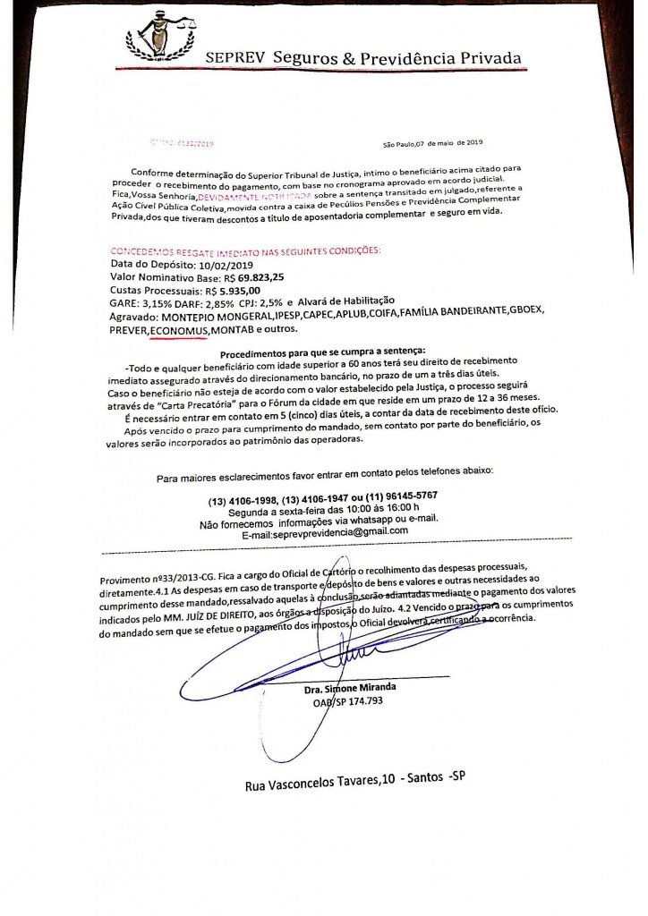 Informamos que chegou ao conhecimento do Instituto o documento abaixo, em nome de “SEPREV Seguros & Previdência Privada”, que cita o Economus dentre as outras Entidades.