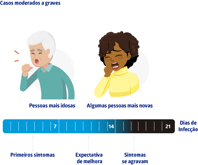 Essas pessoas levarão até 7 dias para melhorar nos casos leves e até 14 dias nos casos moderados. Geralmente, a recuperação acontece sem a necessidade de hospitalização.