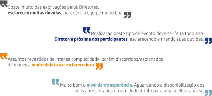 A cada evento, depoimentos mostravam a satisfação dos participantes em relação à iniciativa, fato comprovado por pesquisa realizada pelo Economus nos dias subsequentes aos encontros, cujos resultados apontam que a comunidade não apenas aprova, mas considera este tipo de ação de suma importância.