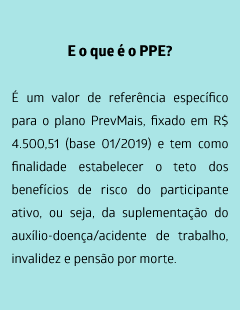 Esta mudança se mostra mais adequada, entre outros fatores, pelo fato do PPE ser atualizado anualmente pela variação do INPC, enquanto que as faixas de salário de benefício, utilizadas no modelo anterior, não eram atualizadas e, portanto, não acompanhavam a recomposição salarial dos participantes.